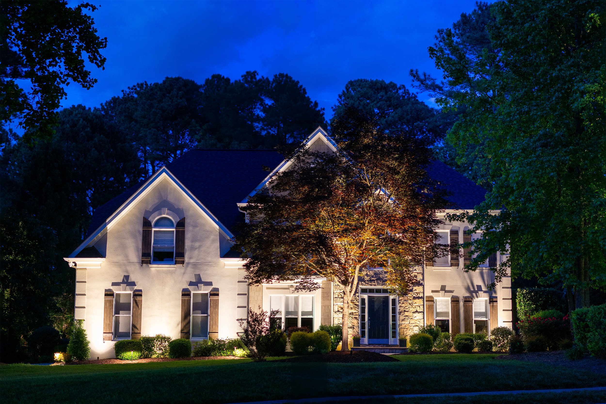 Why allow your beautiful home to go unseen at night? Architectural lighting accentuates the architectural features of your home and usually consists of a combination of strategic up lights and/or downlights.