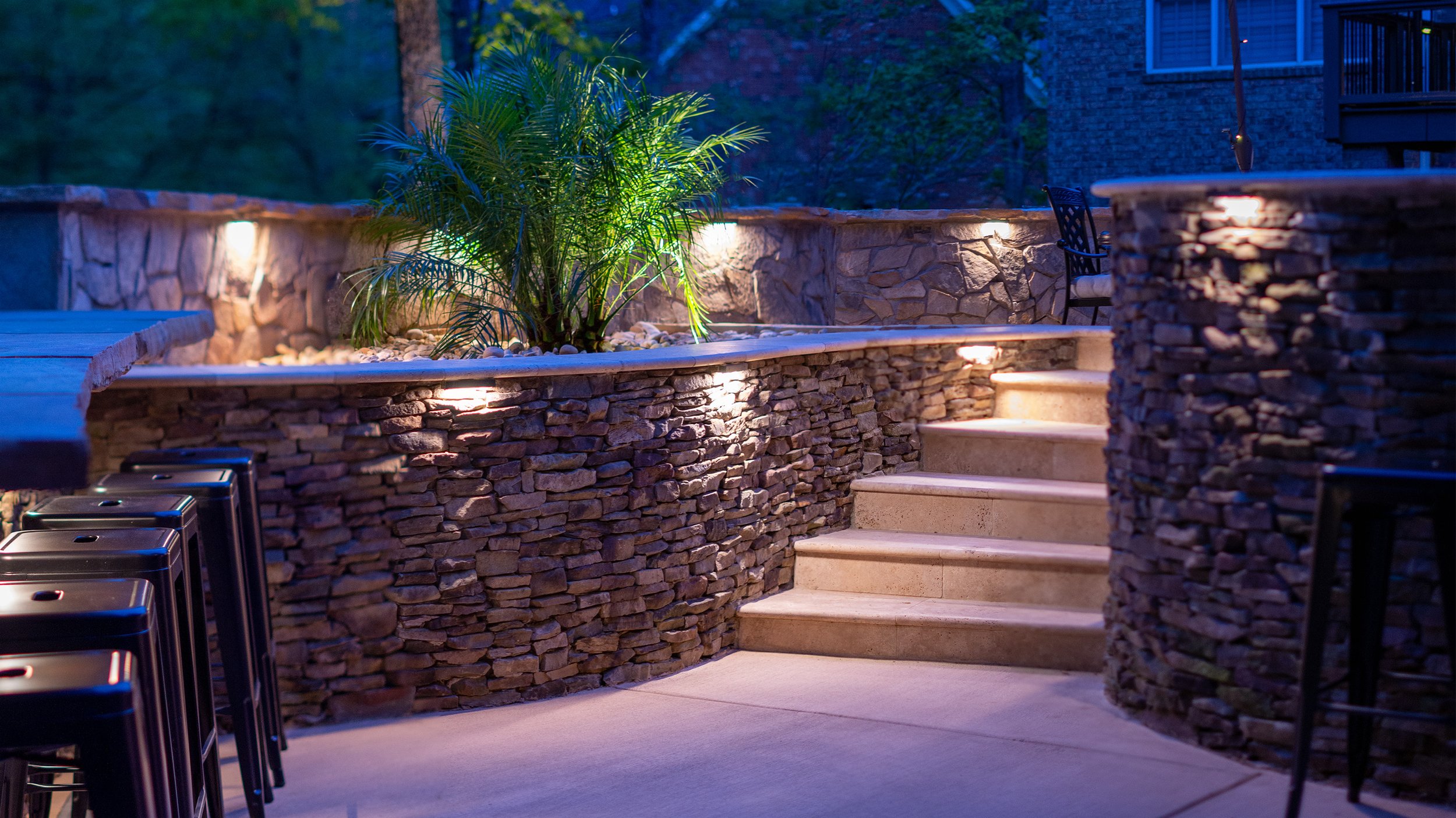 It is always important to incorporate lighting into your overall landscape design. It will bring your property to life at night as it illuminates features such as flowers, plants, retaining walls, decorative rocks, etc.